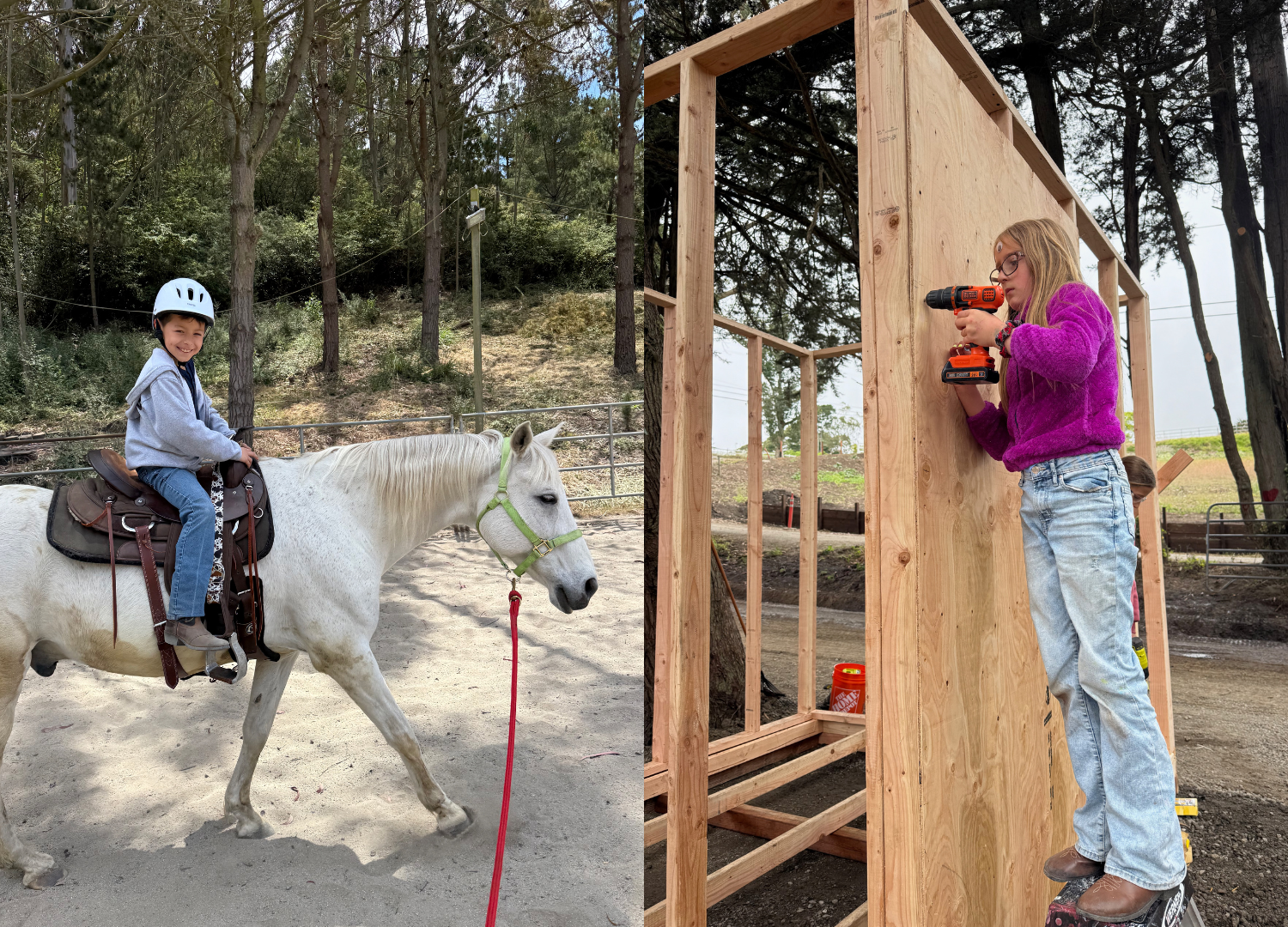 We give kids something rare: fresh air, muddy boots, sawdust in their hair, and the freedom to play, learn, and get their hands dirty — whether it’s caring for horses or building something real with their own hands.